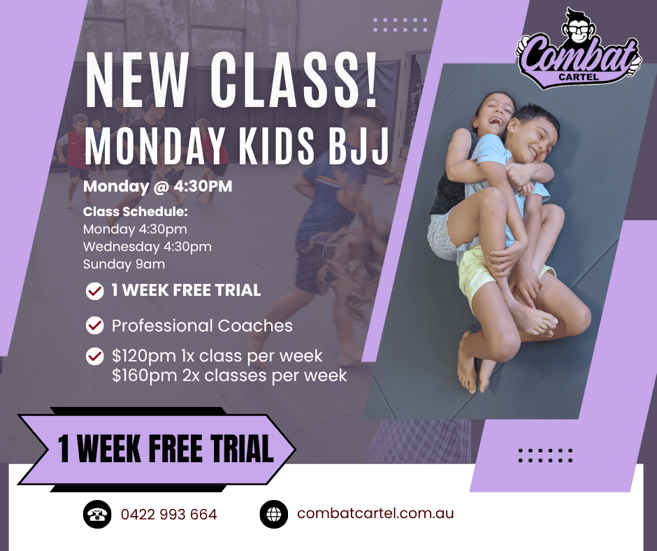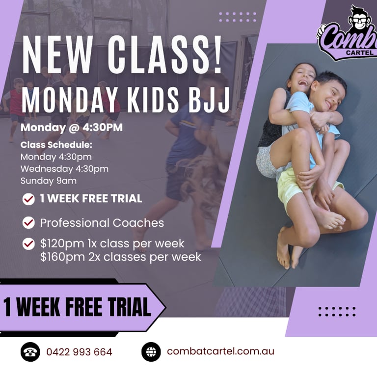 Our Combat Kids program is designed to teach children the fundamentals of grappling and striking in a fun, safe, and supportive environment. With a strong focus on anti-bullying & self-defence, our classes help build confidence, discipline, and physical fitness.